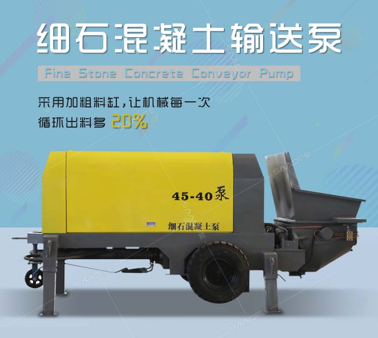 细石混凝土输送泵采用加粗料缸,让机械每一次循环出料多20%。
